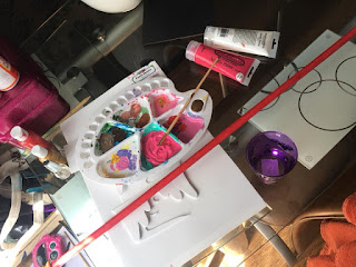 As you can see in this, I painted the stick with a pink, but it turned red, so had to mix a lighter pink and re-paint it. The pink I mixed ended up being what the original colour should have been, so I'm not sure how it ended up turning red.